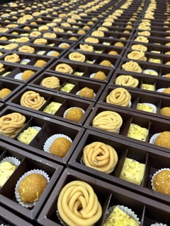• Motichoor Laddu, Badusha, and our signature Cashew Barfi (Mooncake Style)