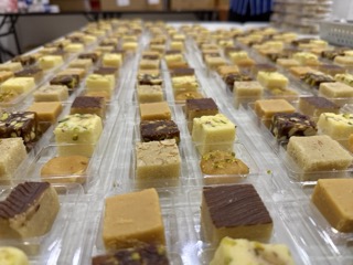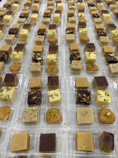 • Mixed Nut Barfi, Hazelnut Chocolate Barfi, and Milk Burfi